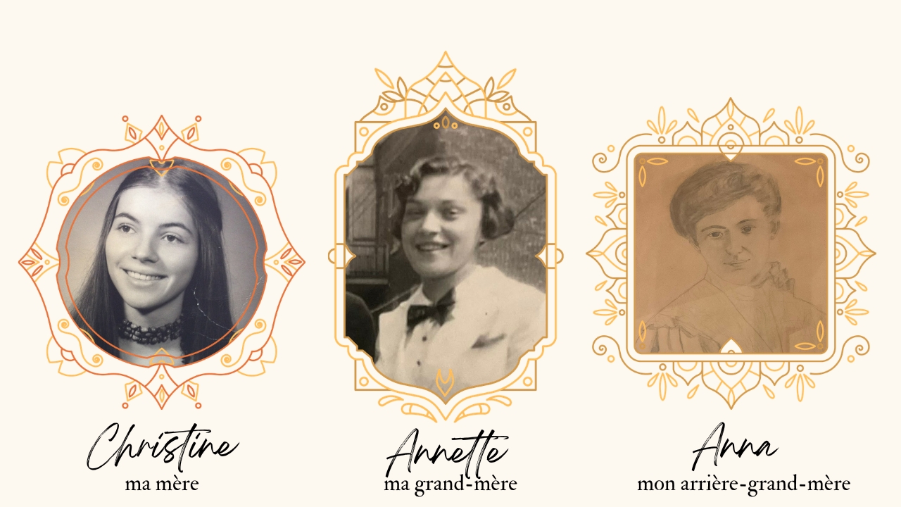 Toutes les femmes de ma lignée m’ont permis d’être là aujourd’hui et je leur en suis reconnaissante. Elles m’ont légué bien des choses, dont leur force, une force que je développe et que j’utilise à ma façon. Anna était une femme indépendante, inconventionnelle pour son époque et forte, à ce que j’en sais.